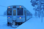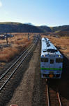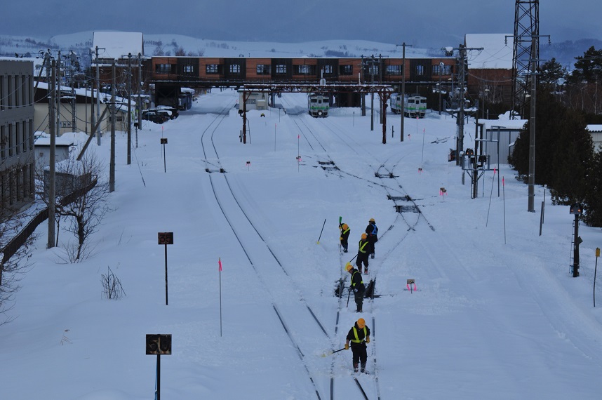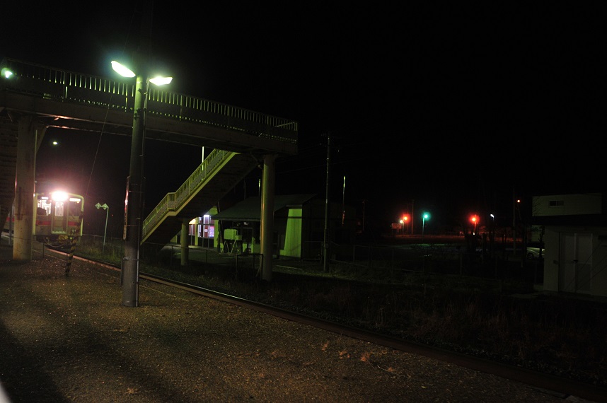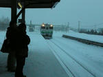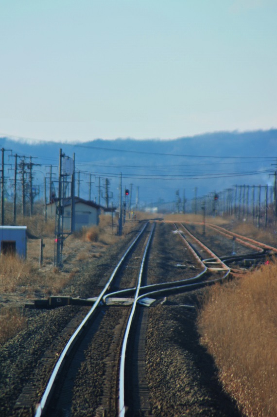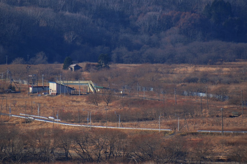 列車の予想通過時間が迫る。はるか遠くを走る列車の撮影なので注意深くポイントを見つめる。気を抜いていたら知らない間に通過してしまいそうだ。