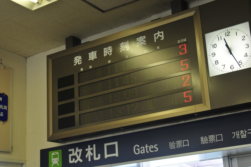 時刻表を確認し次の撮影に備える。あんまり舐めた気持ちでいると痛恨のミスを犯してしまいそうだ。何度か撮影のチャンスがあるのでいろいろアングルを変えたい。