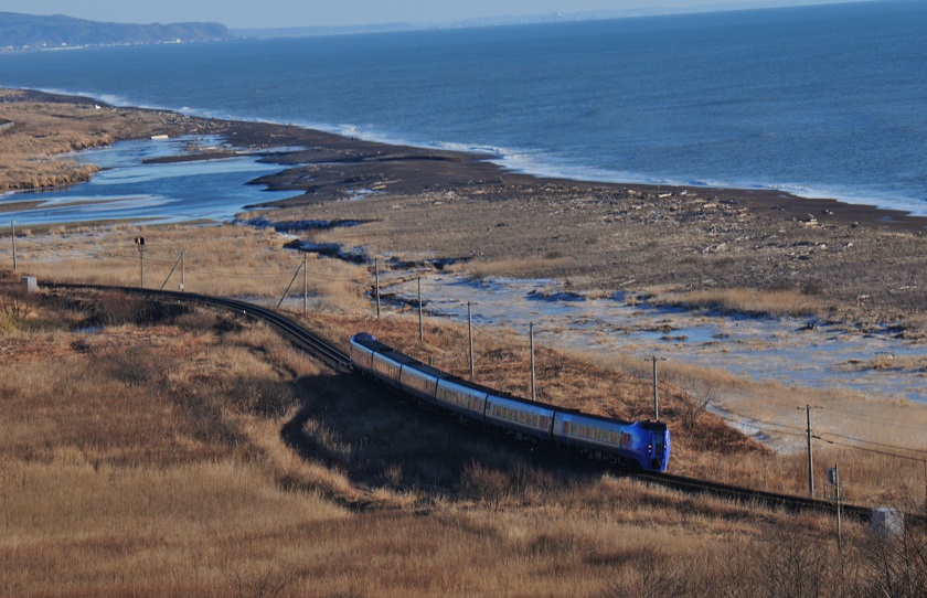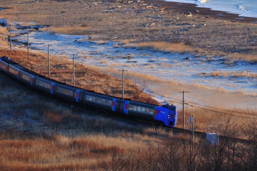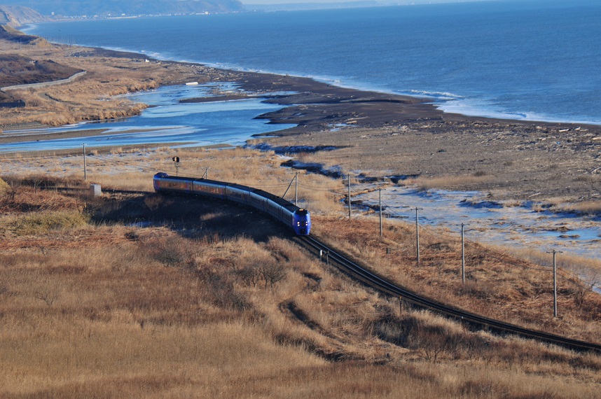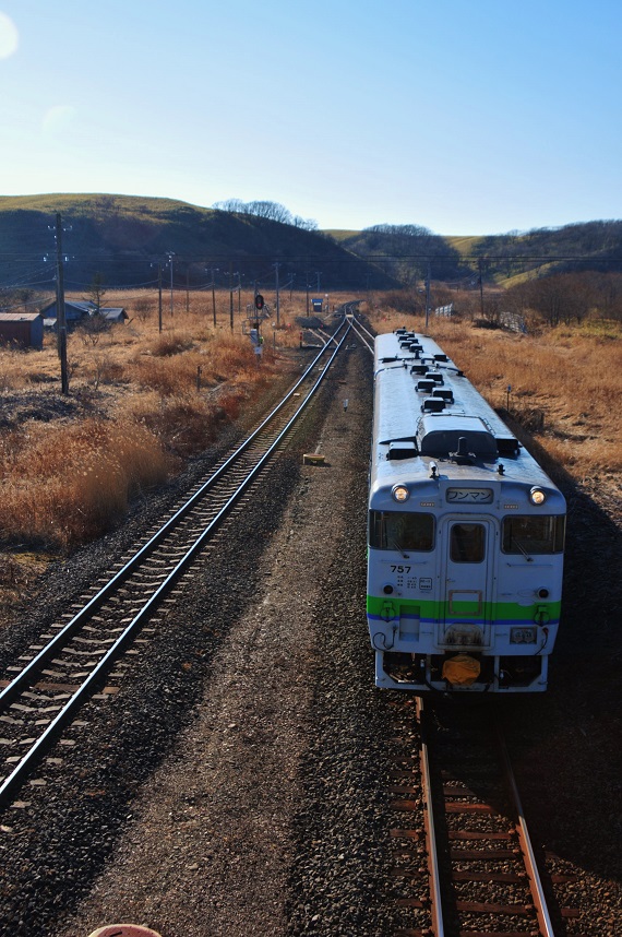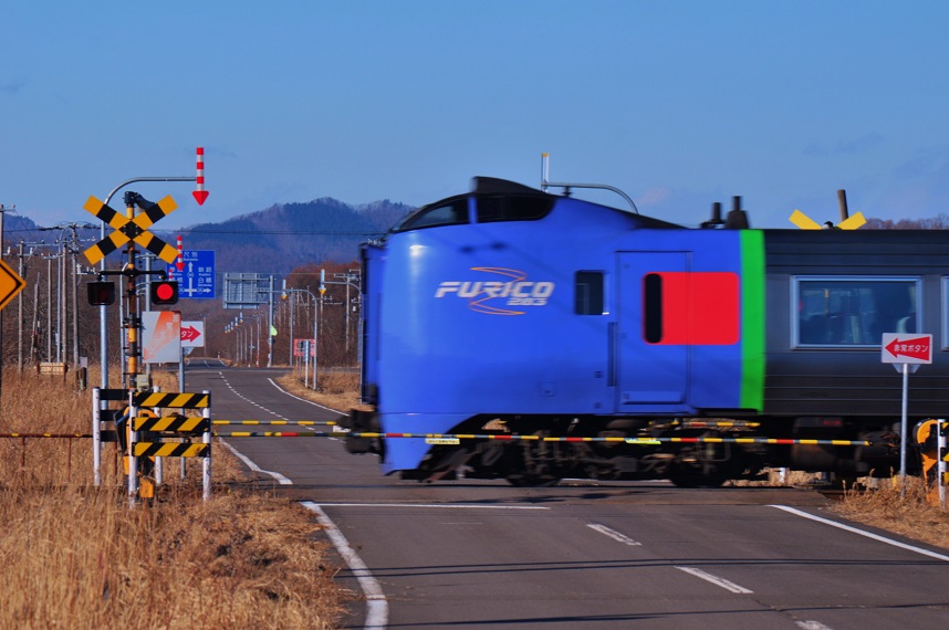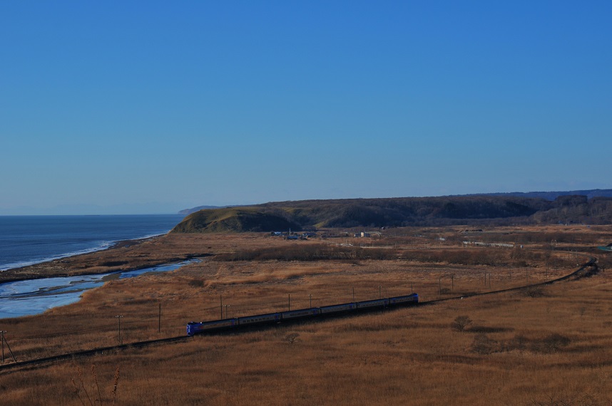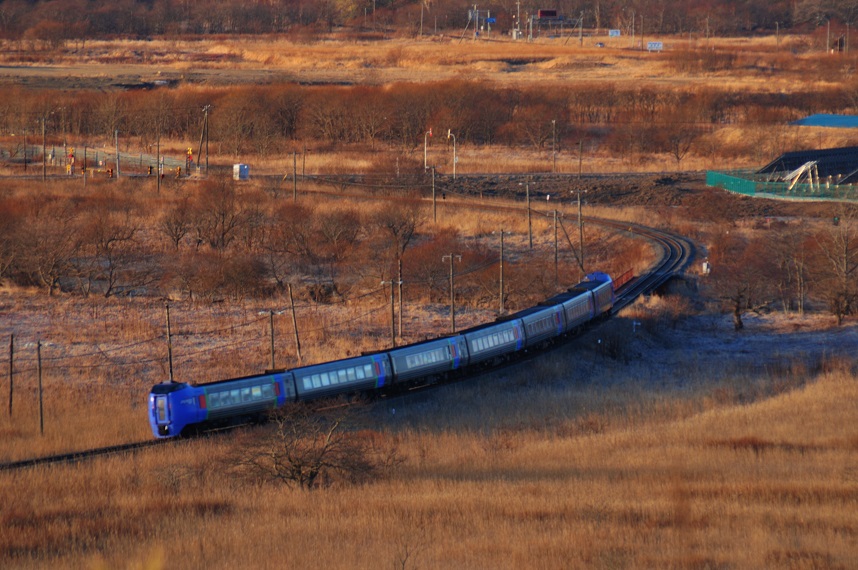 今回は 原野を走る列車を切り取ってみた。次のスーパーおおぞら4号では海も入れて撮ってみよう・・・なんて思ったのもあとから見直した時の話である。列車が視界から消えた後、すぐさま三脚からカメラを外し反対側へと走る。