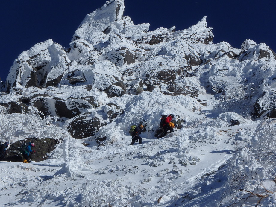 全部もそこそこ多い。僕の前の人、完全冬山武装である。芦別岳かな???