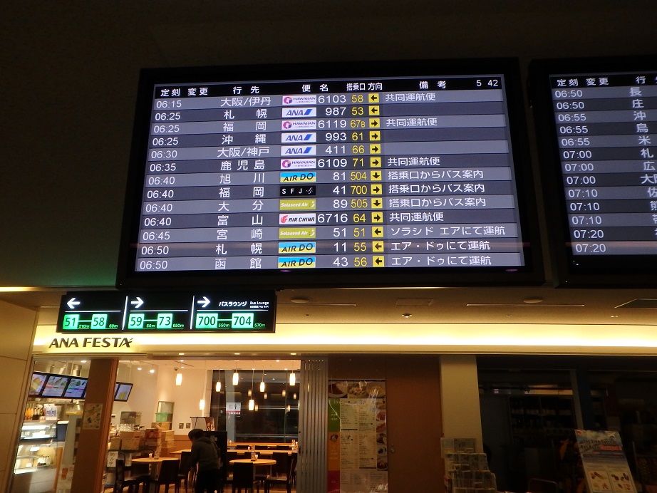 話は変わるけどまぁさすがは天下の羽田空港。全国各地へひっきりなしに飛行機が飛んでいく。出発案内のモニターは短い間隔でびっしりとうまっている。ここからなら日本全国どこへでも飛んで行けそうだ。