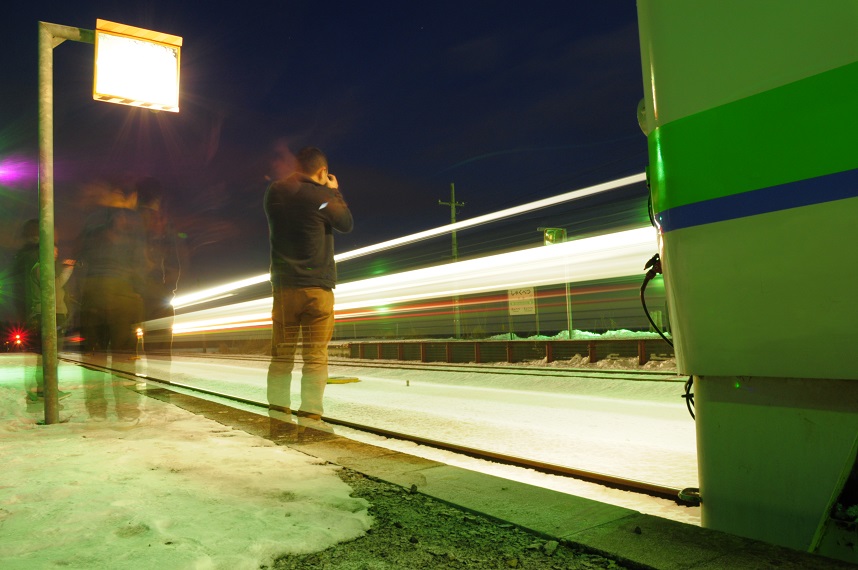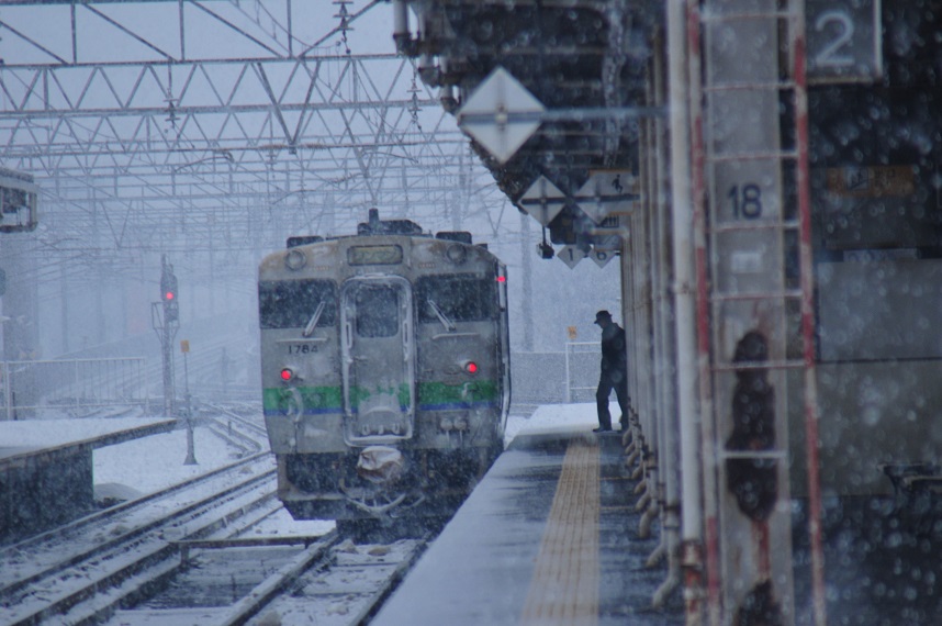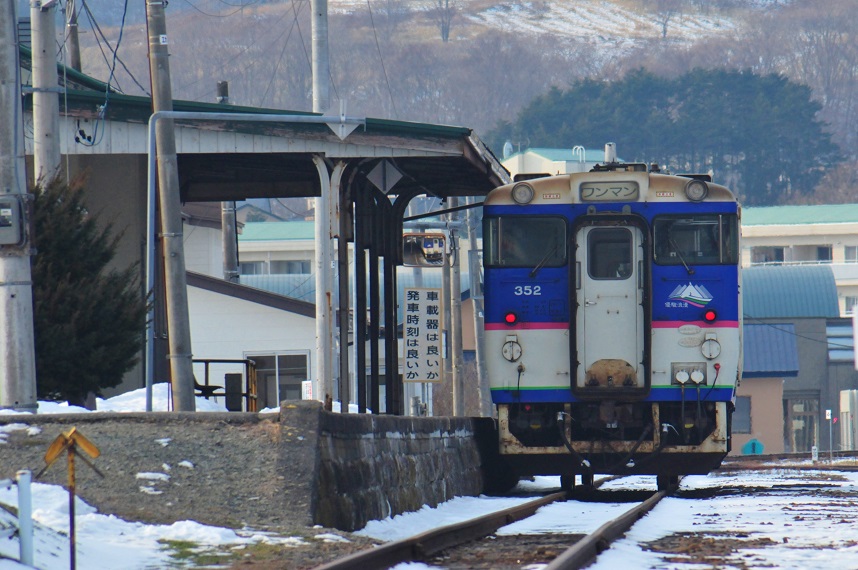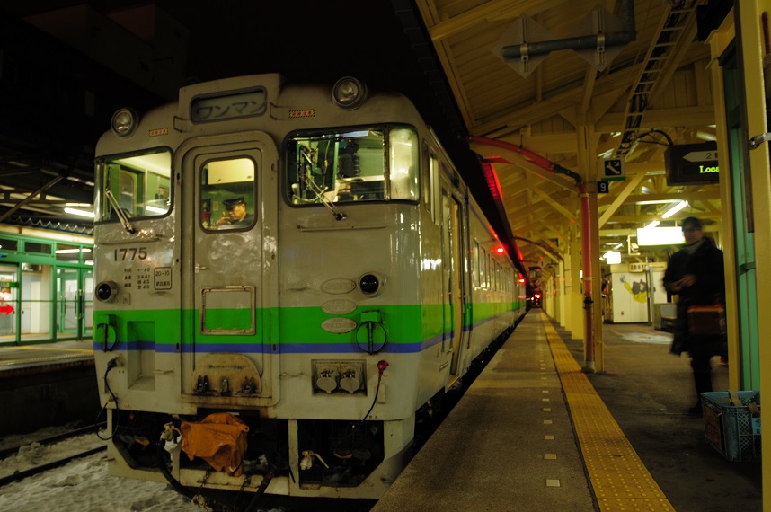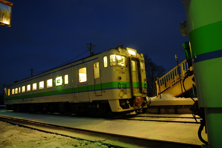 お次は新得からの普通列車。終着駅に到着する場面をパシャ。