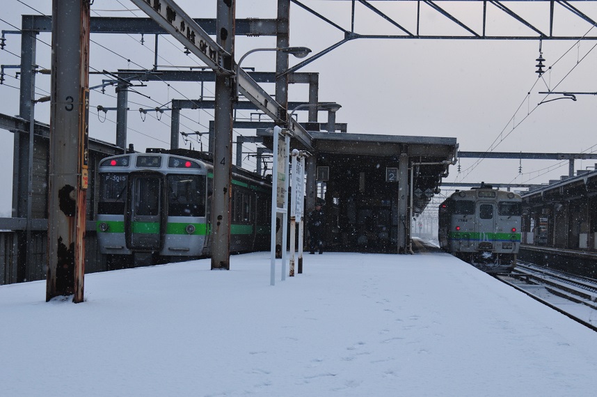 なんとここで711系とご対面。実は岩見沢の駅でもこいつを見かけた。しかし・・・ちんたらしてたらいつの間にか姿を消していた。今度はどこか行く前に確実にカメラに収める。
