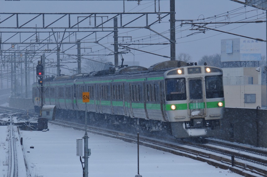 7時01分、列車は滝川に向け出発。しかしまぁ毎年のことながら札幌から滝川方面って雪が多い。函館線だけでなく石北線も宗谷線も留萌線も富良野線も・・・とにかく道南や太平洋岸の路線以外全部だな。まぁ北海道なんだから当たり前か。