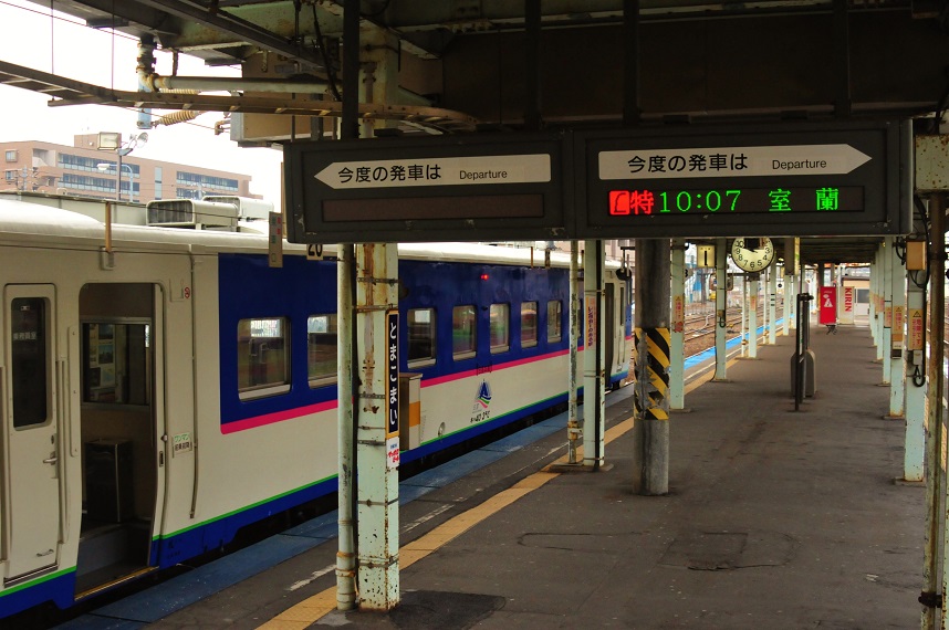 そして便の変更に協力した人には7500マイルか1万円をくれるらしい。うひょ~!!!一万円くれるってか。変更後の便は7時発の8時半千歳着。急いで時刻表をめくって千歳からのダイヤを確認する。今日は日高線を往復し札幌に向かう。当初は苫小牧から長万部の間のどこかで撮影をしようと思っていたが検討の結果、のんびり日高線に揺られることに決めた。で、確認の結果到着が30分遅れても今日の行程にはまったく影響がないことが判明。というわけでいそいそと搭乗口のお姉さんに便の変更の協力を申し出る。そして「あの~一万円もらえるんですよね???」