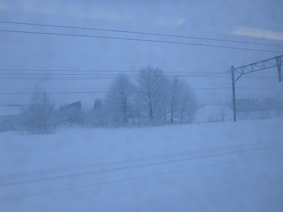 7時56分、列車は再び滝川に向け走り始めた。滝川に近づくにつれどんどん雪深くなる。