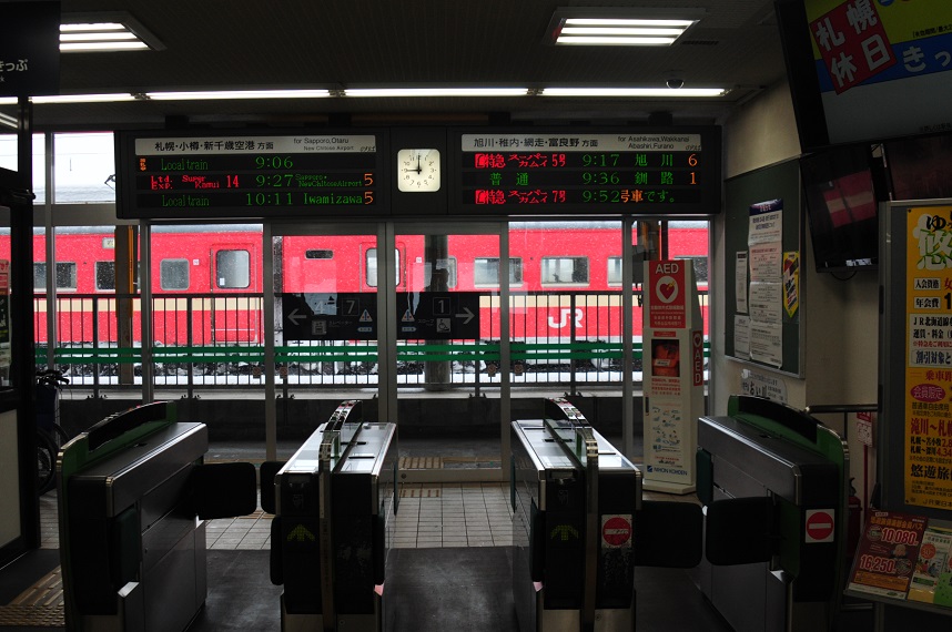 8時34分、列車は定刻通りに滝川に到着。