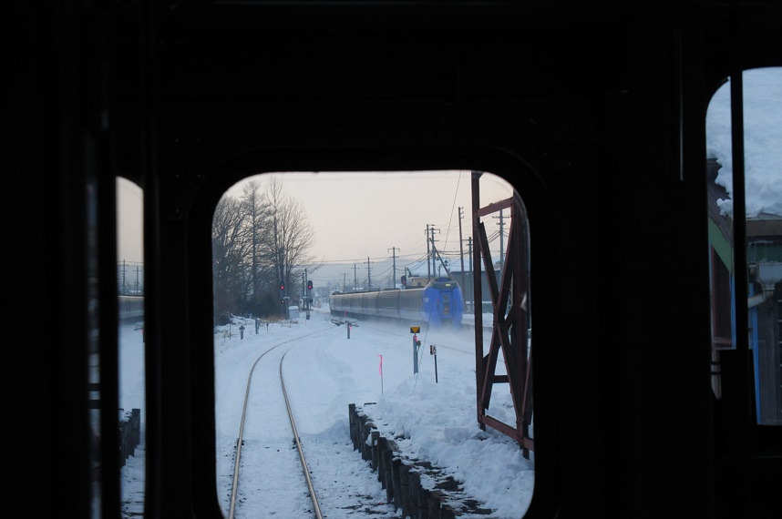 後ろから来た網走行きオホーツク1号が到着。